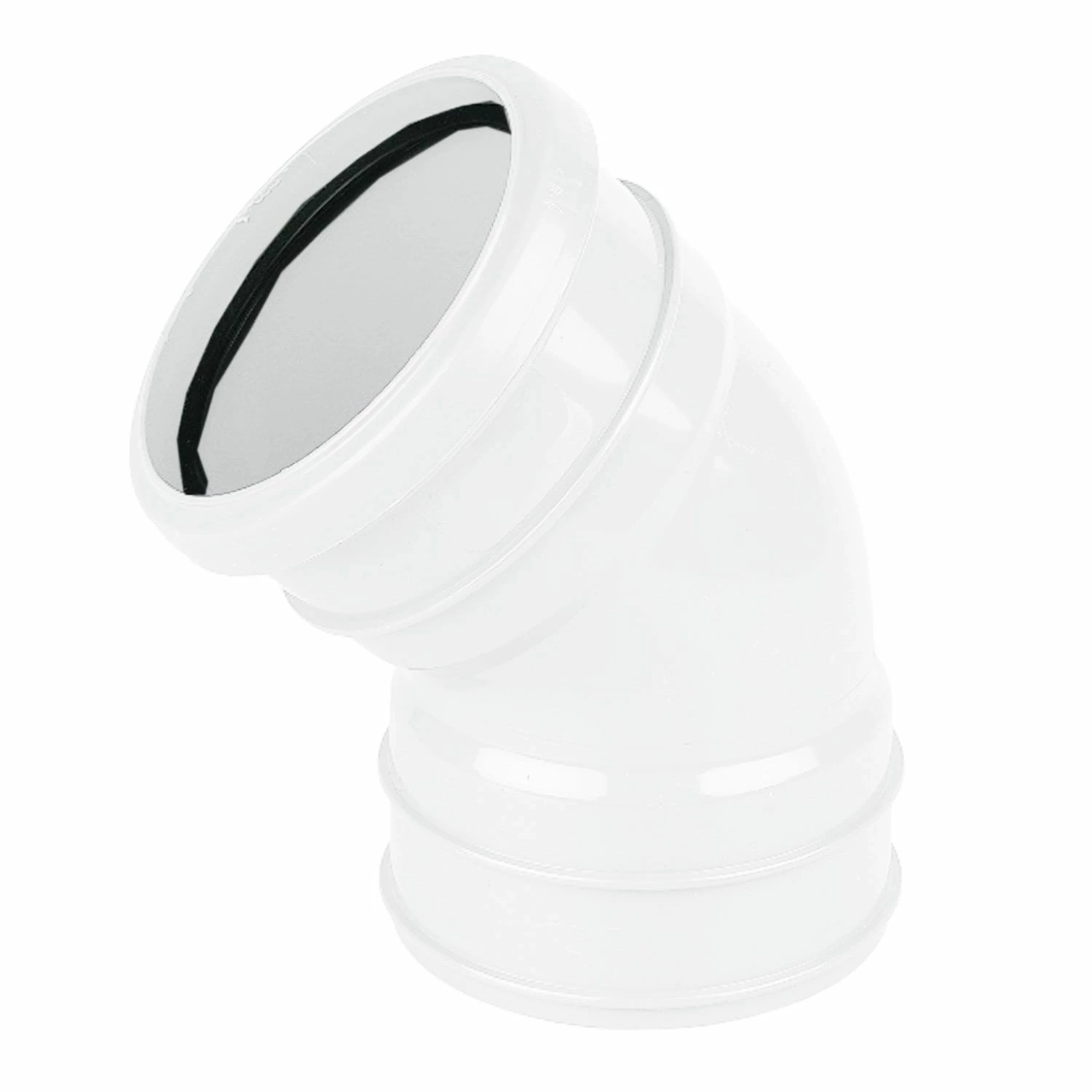 Our white 110mm pipe double socket 45 degree bend is part of Kayflow’s round downpipe range. The round range is able to cope with extremely high rates of water, and offers a classic round profile. The round downpipe system is ideal for a fast user friendly installation.