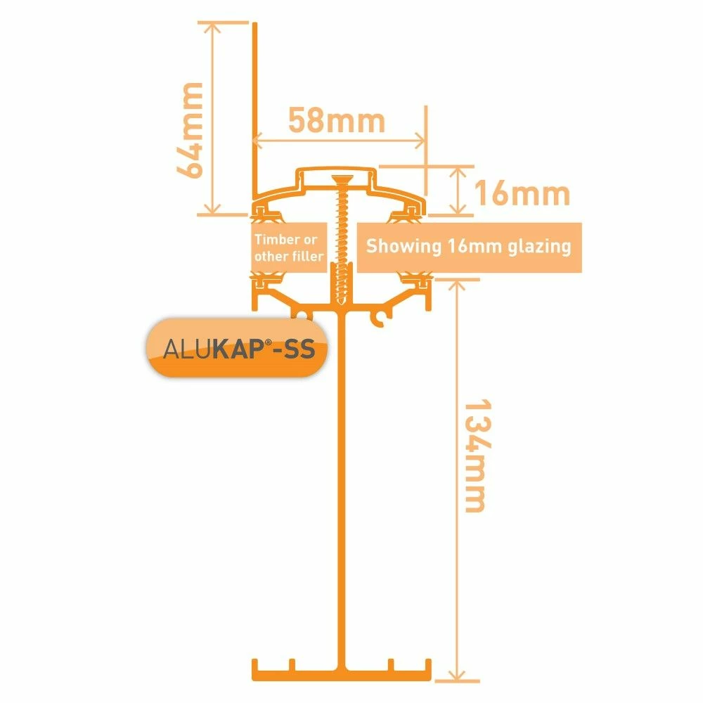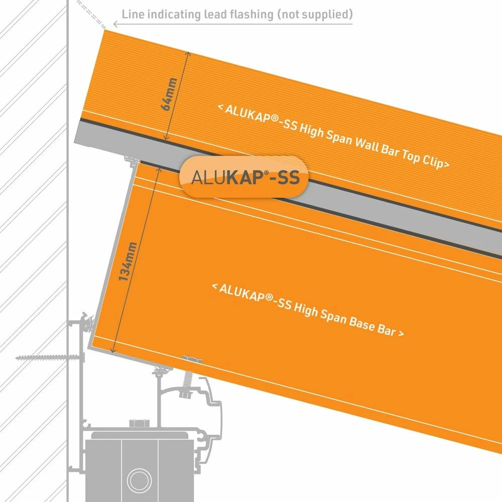 This 58mm x 6,000mm, 134mm thick, White Alukap®-SS High Span Wall Bar provides the perfect glazing finish on any roof where the end rafter abuts a rising wall. The Alukap®-SS Wall Bar integral upstand provides a perfect waterproofing upstand and an excellent detail for lead flashing over. The Alukap®-SS High Span Bar provides an excellent all-aluminium structural beam for unsupported glazing spans up to 6m depending on glazing material and glazing bar centres. Alukap®-SS suits glass or Axiome® polycarbonate of any thickness. The all-aluminium Alukap®-SS system provides a robust, long-lasting aesthetically pleasing finish to any residential, public, or commercial canopy or roofing structure. Estimated load span advice is available upon request, although users are advised to obtain their independent advice to verify the span calculations are correct for their site-specific application.