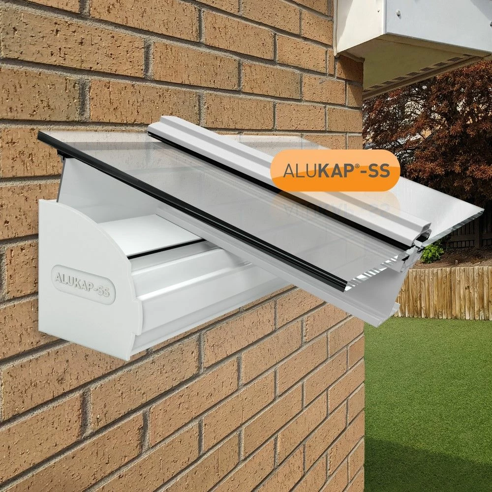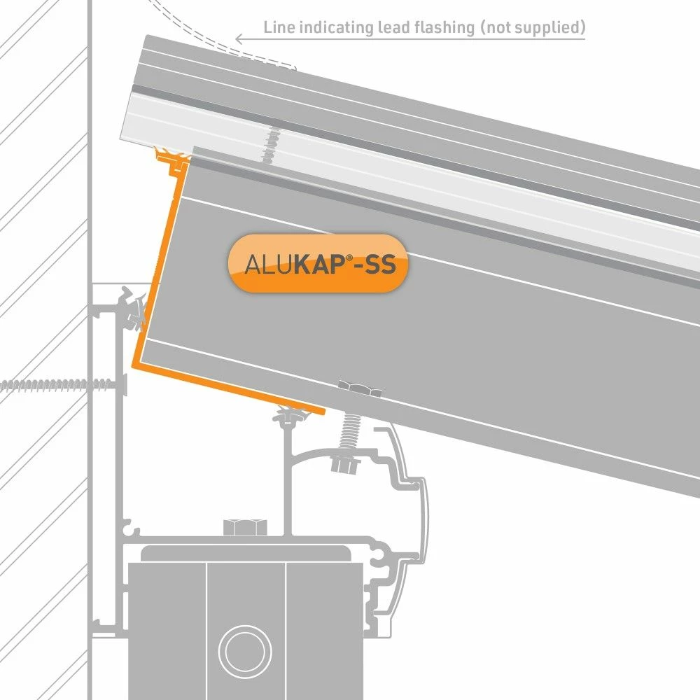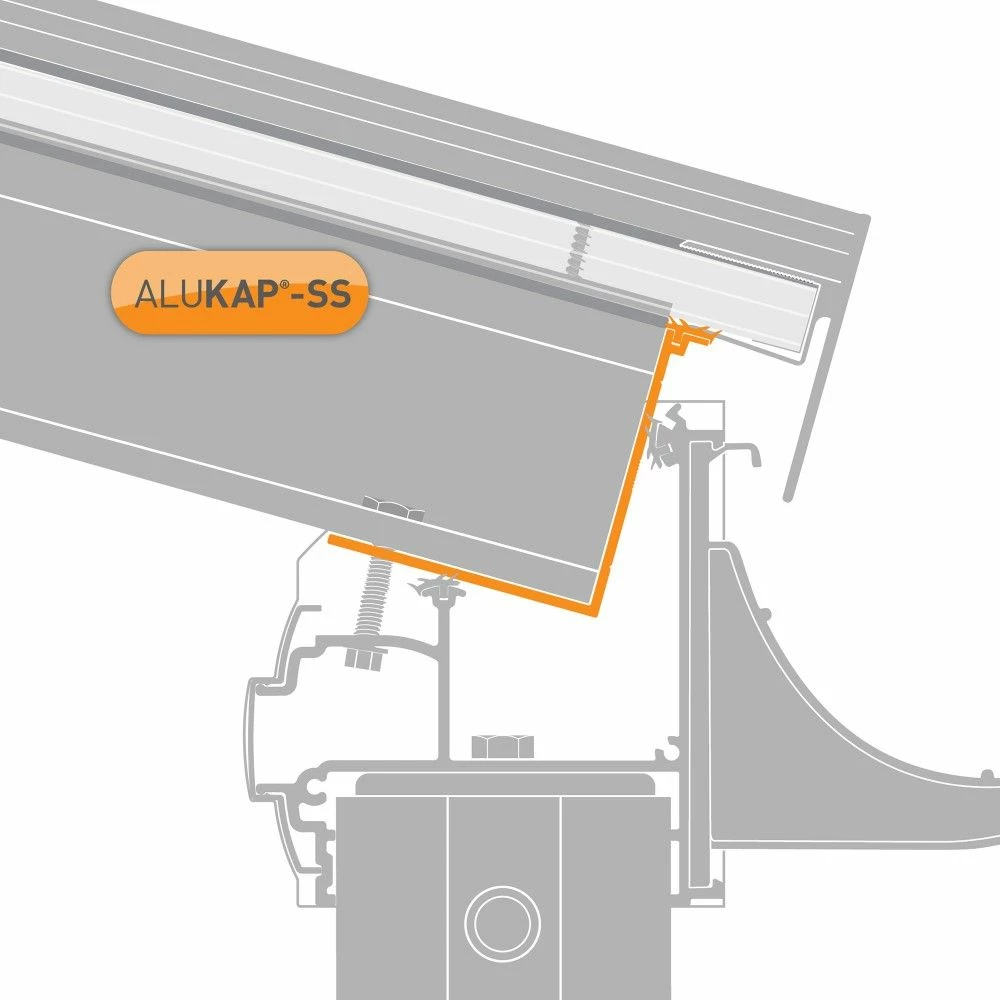 This 88mm x 4,800mm, in 66mm thick, White The Alukap®-SS Low Profile Cap provides a perfect capping profile for the upper and lower ends of the Alukap®-SS beam. This Alukap®-SS Low Profile Cap rests on to the Alukap®-SS Wall Plate at the Upper end and the Alukap®-SS Eaves Beam at the lower end of the canopy or roof. The intersection of this Alukap®-SS Low Profile Cap with the Eaves Beam or Wall Plate suits pitches from 0.25 degrees up to 25.00 degrees.