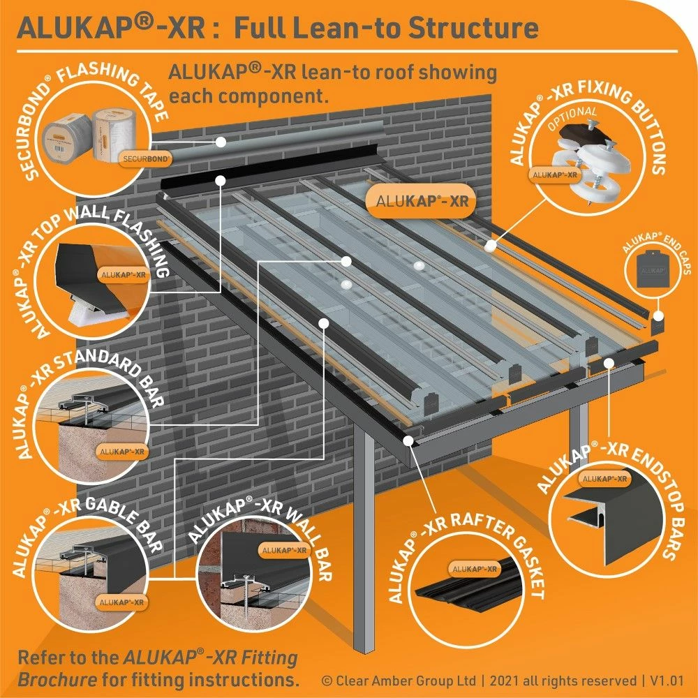 This 105mm x 3,000mm, 132mm thick, PC Alukap-XR Top Wall Flashing is a unique and innovative way to finish your roof where the Top is against a wall. Manufactured from durable Aluminium, the Alukap-XR Top Wall Flashing provides a clean, neat and long-lasting finish to a previously hard-to-finish area of your roof, compatible with various roof angles. Included is the Foam gasket allowing you to push down onto the roof to create a seal over the Alukap-XR Glazing Bars joining the Axiome or Axgard.