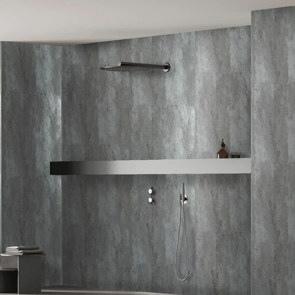 Introducing the Zinc shower panel – a luxurious, iridescent that adds a beautiful contemporary feel to your shower area. Its metallic colouration and satin finish makes it truly special, adding an elegant touch to your home.